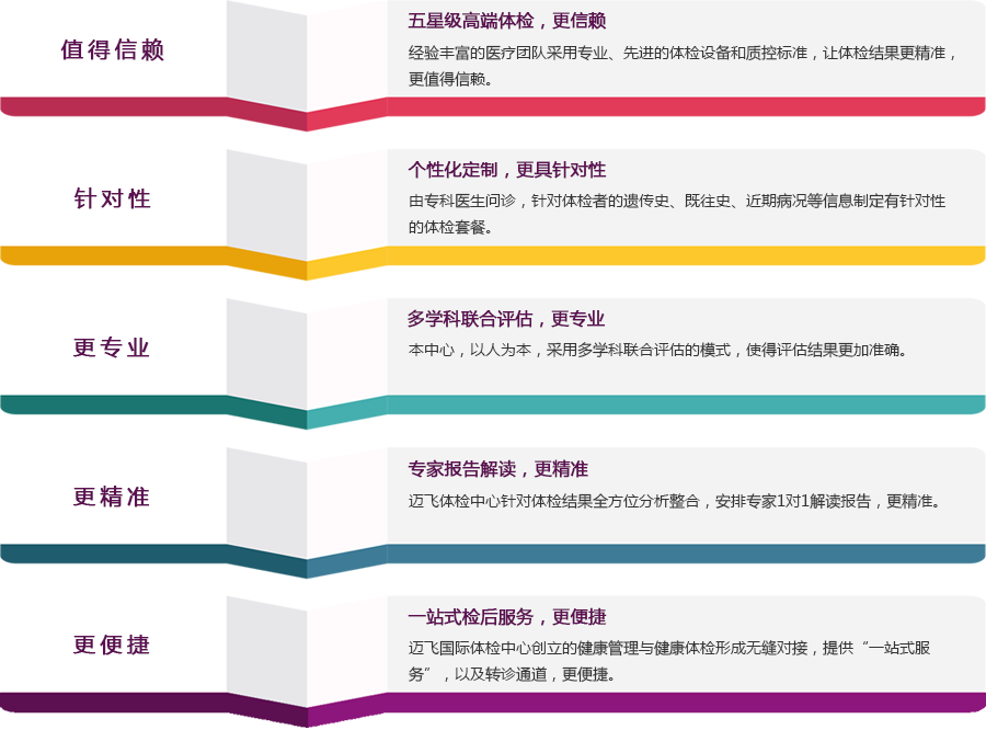 迈飞体检中心,尊重医疗规律,以“医者仁心”对待每一位客人。是您和家人朋友、同事体检的理想选择。
